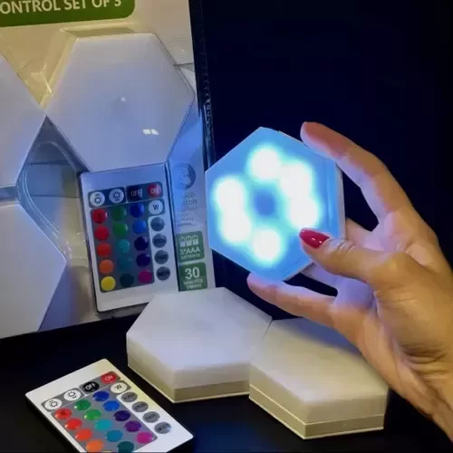 3 luces LED RGB hexagonales con control remoto y sensible al tacto!